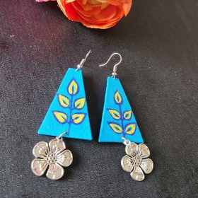 Exclusive Lightweight Madhubani Earrings Triangle Blue