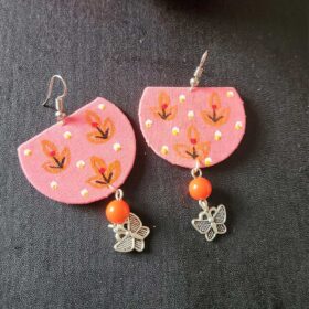 Exclusive Lightweight Madhubani Earrings Semicircle Pink