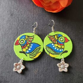 Exclusive Lightweight Madhubani Earrings Circle Green