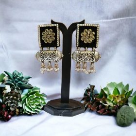 Ethnic Jhumka Diamond Shape Pink Beadwork