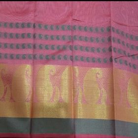 Kerala Cotton Silk Cream Saree with Blouse Golden Border