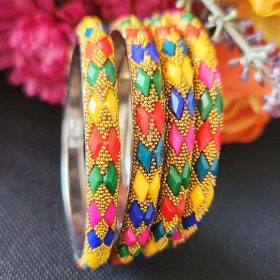This beautiful boho-style necklace is sure to make a statement! crafted with colorful thread work in metal, this contemporary-style necklace is perfect for adding a touch of vibrancy and unique style to any outfit. The intricate details make this an eye-catching accessory, sure to draw plenty of attention. Add a touch of bohemian flair to your wardrobe with this stunning necklace.