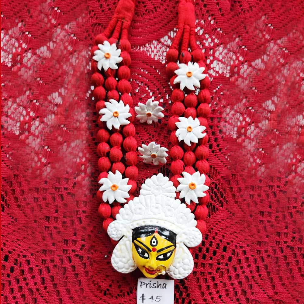 This gorgeous Durga Jewellery Set will bring a contemporary style with a traditional look to your wardrobe. Featuring beautiful hand-painted artwork, this necklace and earrings set will add a unique and stunning touch to any ensemble. The intricate details of the traditional indian artwork will captivate you and draw the attention of everyone around you. Show off a modern style with a traditional twist with this exquisite Durga Jewellery Set.