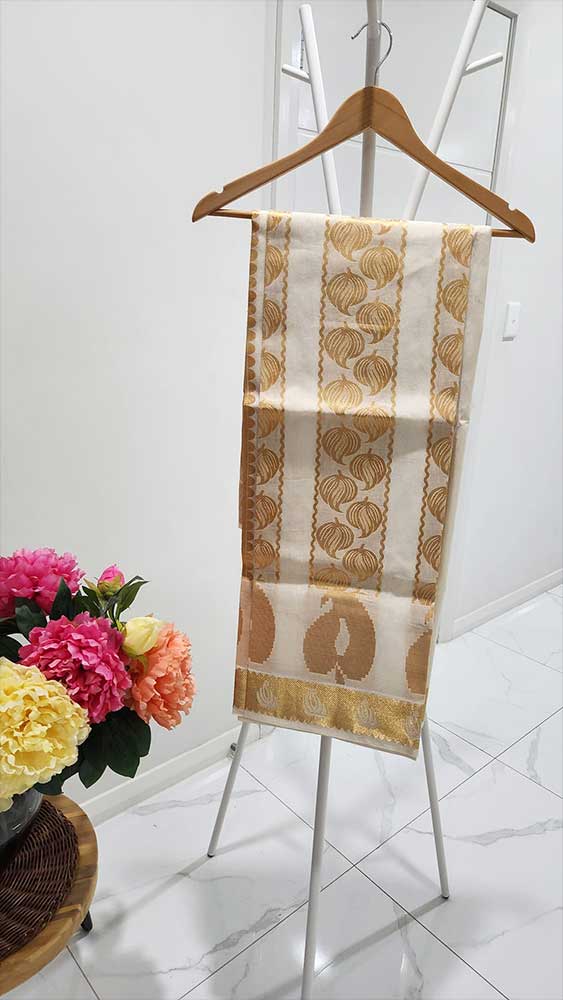 - Off-white (Cream) Kerala Cotton Silk Saree.