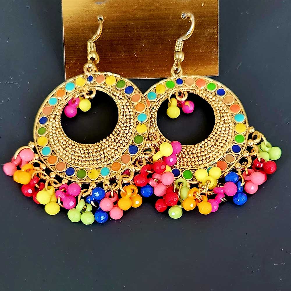 These trendy multicolour earrings are perfect for any contemporary and stylish look. Whether you’re dressing up or keeping things casual, these are the perfect accessory to add a trendy flair to your look.